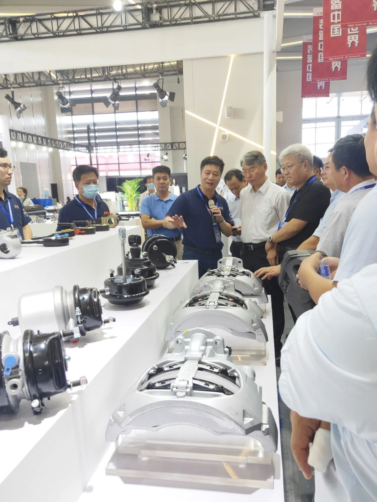 本屆展會整體展出面積12萬平方米,以“創(chuàng)新、創(chuàng)造、創(chuàng)品牌”為主題,首次開展線上展會直播,共有638家企業(yè)參展,412輛專用汽車報名,參展產(chǎn)品的種類比上屆提升20%。為更好的展現(xiàn)智能化、模塊化、系統(tǒng)化產(chǎn)品的理念,瑞立團隊對掛車制動系統(tǒng)的EBS、ECAS、TPMS、360等電子電控產(chǎn)品;輪端制動模塊的盤式制動器、彈簧缸、摩擦片、ABS傳感器、調(diào)整臂等產(chǎn)品按類別向客戶做了歸類展示。